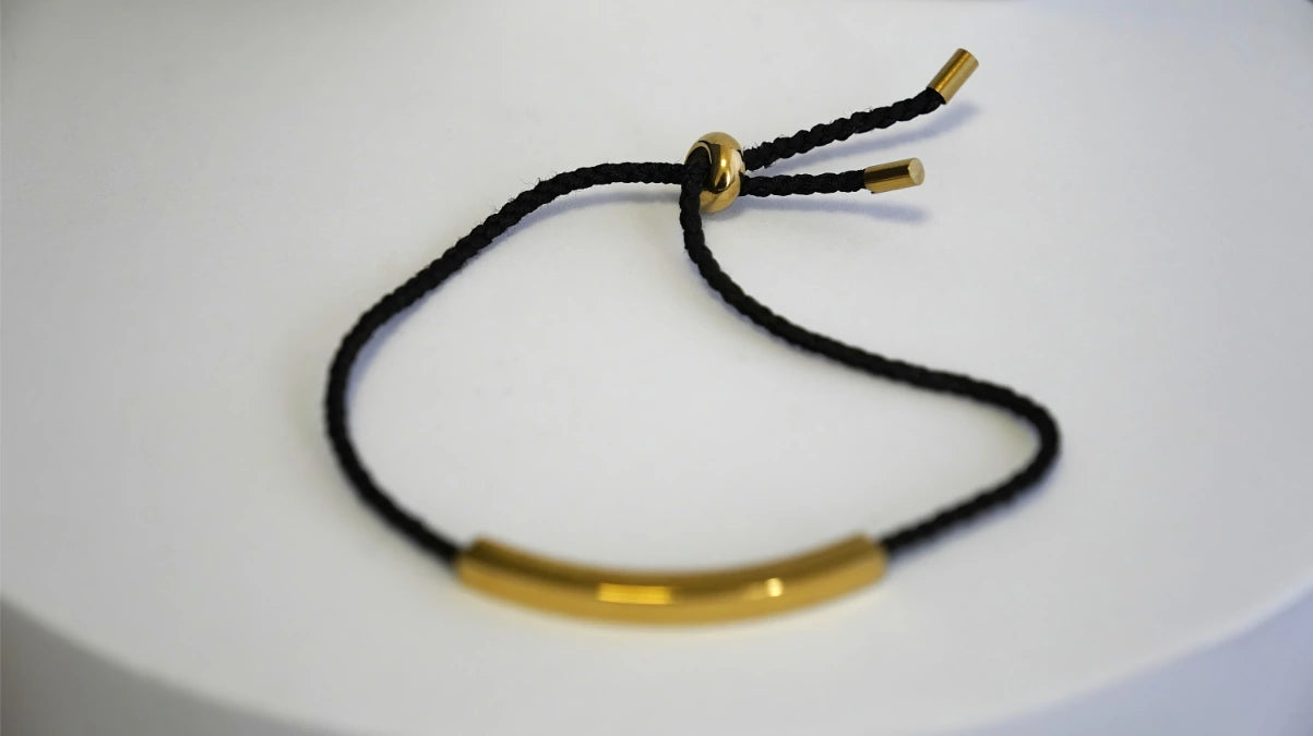 Bracciale con placchetta personalizzabile e chiusura regolabile ad anello.