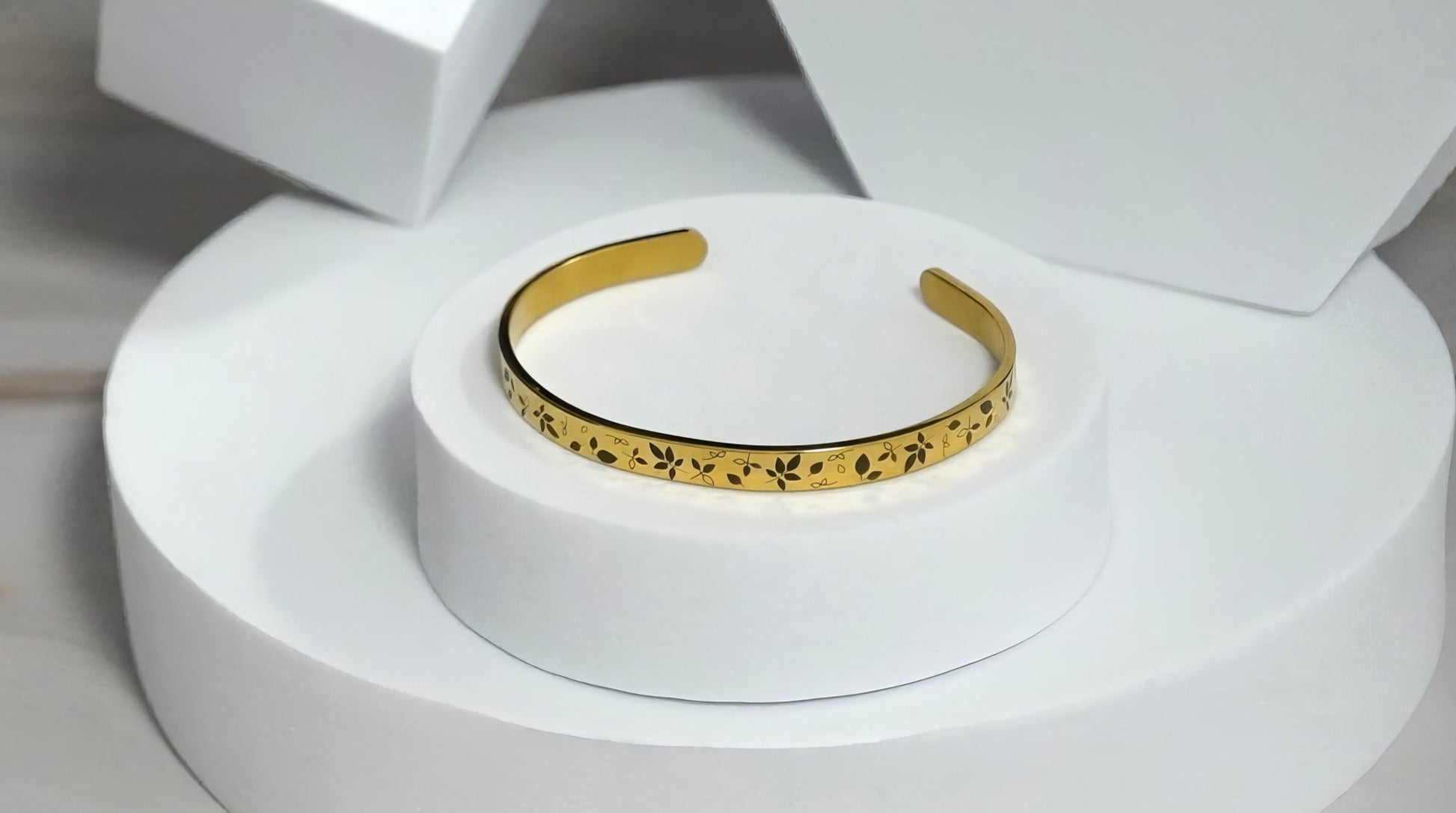 Un bracciale rigido in acciaio inox si presenta come un gioiello elegante e sofisticato, perfetto per chi ama indossare accessori unici.